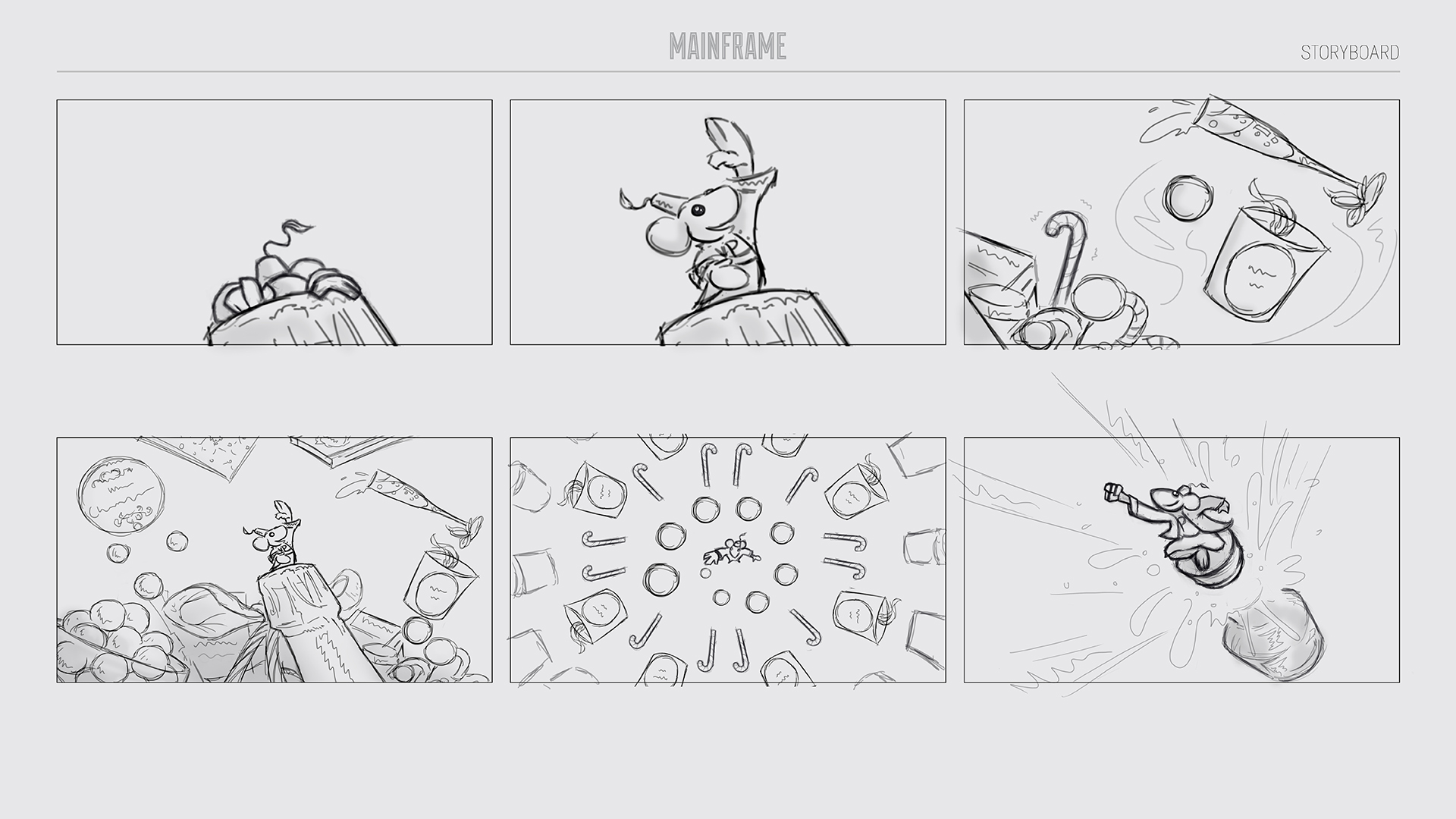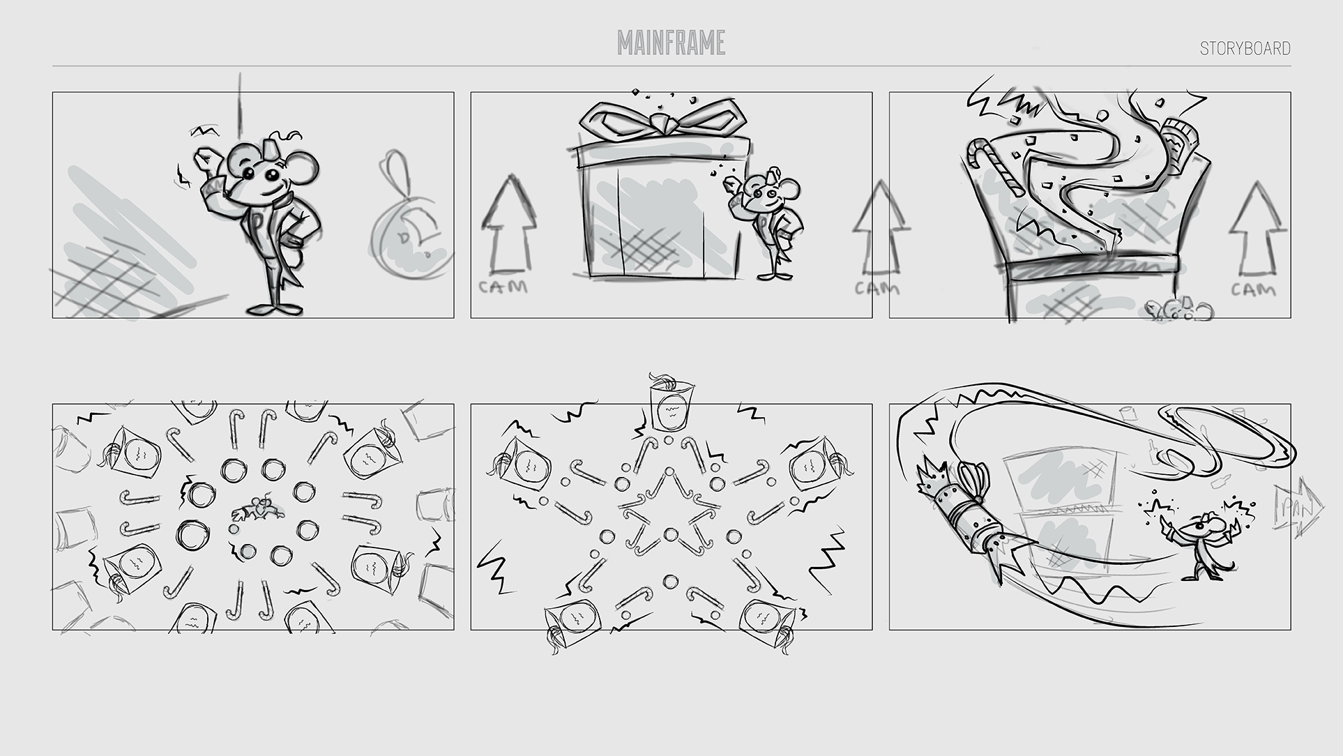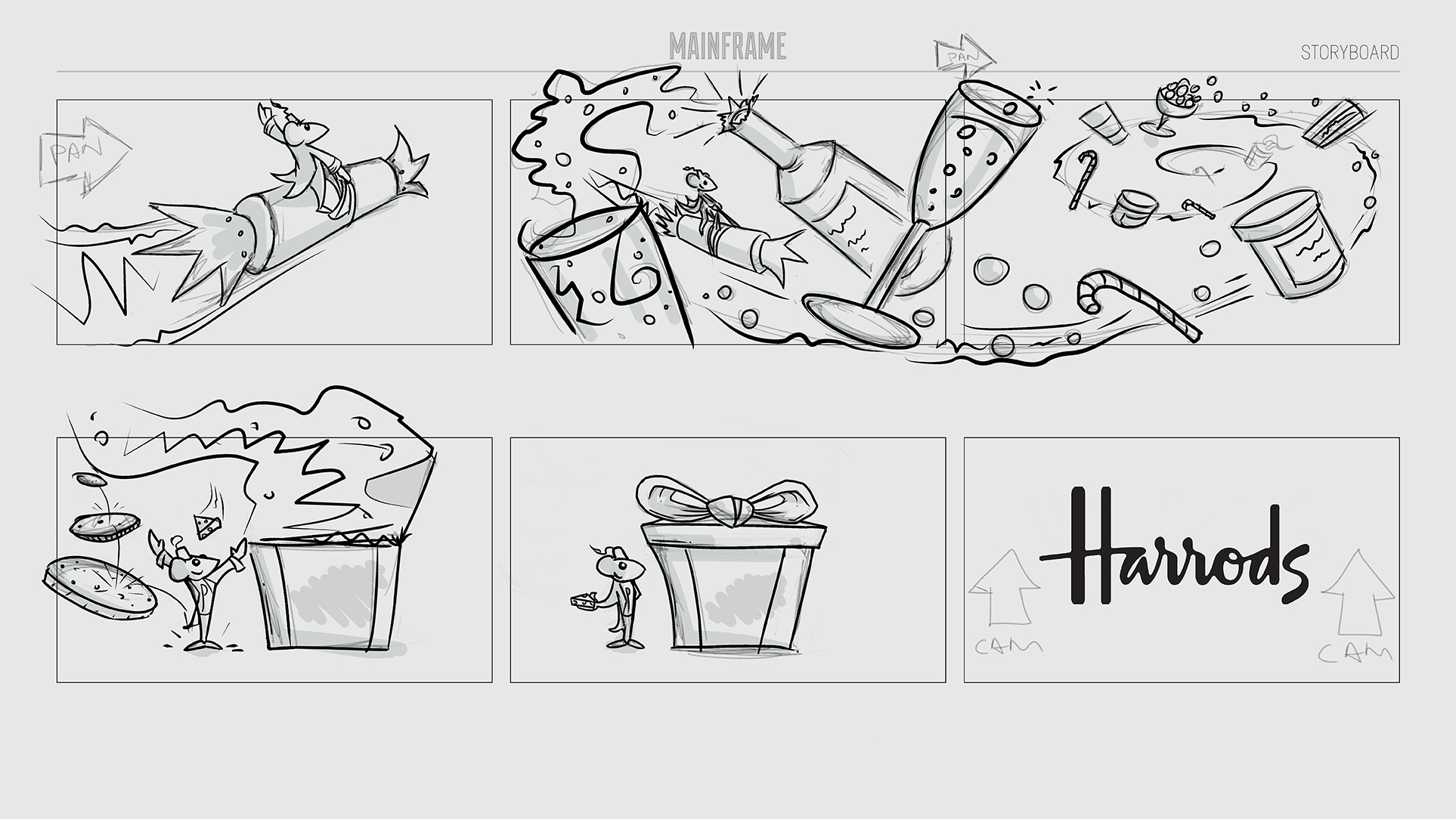 CHRISTMAS MICE A Christmas concept for Harrods. Character modelling, shading, texturing and look development. I also created some storyboards and concept sketches for the project. Created at the London based VFX studio Mainframe. 2016 Storyboards and concepts Home